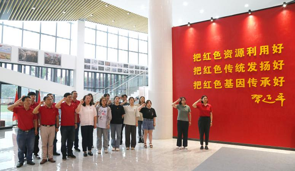 活動最后,大家一起參觀了揚州黨史文化公園初心館,通過講解員的講解回顧了黨的一大到二十大的百年奮斗光輝歷程,深層次、多維度地學(xué)習(xí)了中國共產(chǎn)黨黨史,對黨建文化既有了感官上的深刻認識又有了思想上的高度提升。在紅色黨建VR科技展示館中,通過一張張圖片、一件件展品、一個個鮮活的黨史故事,讓大家重溫了革命事跡與老一輩黨員同志們艱苦奮斗的革命歷程。全體黨員還在兩位書記的帶領(lǐng)下重溫了入黨誓詞,著力增強黨性觀念,激勵每一位黨員不忘初心、牢記使命,做一名合格的共產(chǎn)黨員,忠誠履職、實干擔(dān)當(dāng)。