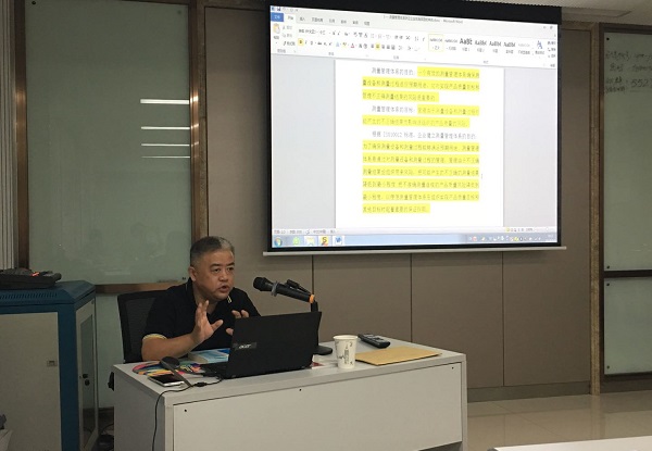 為統一評價尺度,保障評價質量,確保工作順利實施,項目組邀請江蘇省計量研究院副總工程師、國家流量計量技術委員會委員、優秀“測量管理體系認證(AAA)”企業認定評價細則起草人黃朝暉老師于9月4日上午為參評人員開展GB/T 19022-2003測量管理體系標準解析、認定評價細則及計量管理等方面專業知識的培訓。下午,項目組召開動員會,對現場評價實施日程安排進行了部署,對各評審組提出了工作紀律、評審時限及評審質量等要求;全體評審人員簽署《認定評價人員公正性、保密及廉潔自律承諾書》。全省優秀“測量管理體系認證(AAA)”企業認定評價工作正式啟動。