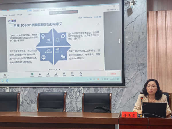 培訓講師潘玉霞作“質量管理體系助力企業行穩致遠”主題培訓,從貫徹質量管理體系標準意義著手,介紹了質量管理體系標準發展歷程,通過對質量管理體系標準理解運用的詳細闡述,講解如何進行質量管理體系策劃、建立和實施。